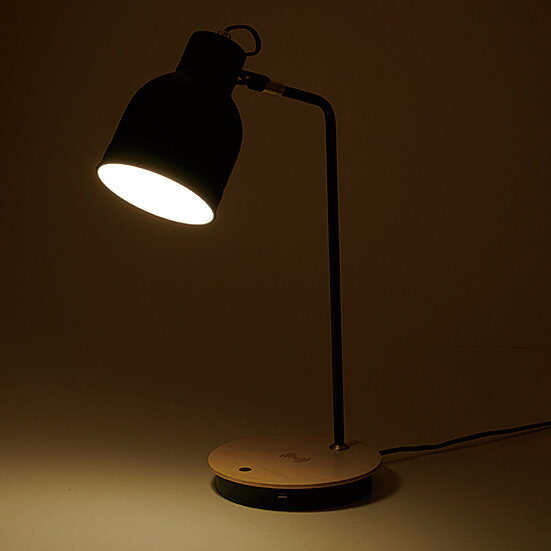 テーブルランプベースにワイヤレス充電、Qi充電機能を搭載。