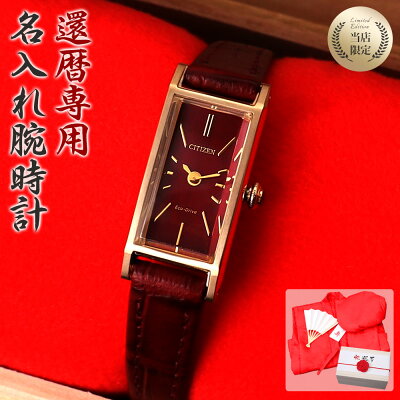 【 還暦祝い 専用 】[ 世界にひとつの特別な 名入れ 時計 ]電池交換不要 シチズン 腕時計 ソーラー レディース 女性 向け お母さん 母親 母 義母 還暦 祝い お祝い 赤い もの プレゼント 記念品 記念 刻印 人気 上司 ギフト 赤いちゃんちゃんこ 赤 ちゃんちゃんこ 赤色