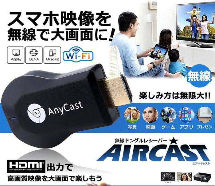 スマホ映像を無線で大画面に!楽しみ方は無限大!!無線ドングルレシーバー「 エアーキャスト 」が登場!!!ご購入前に、ぜひ読んでください:簡単な英語の説明書きしか付いていませんので、この手の機器の設定が苦手な方にはお勧めしません。