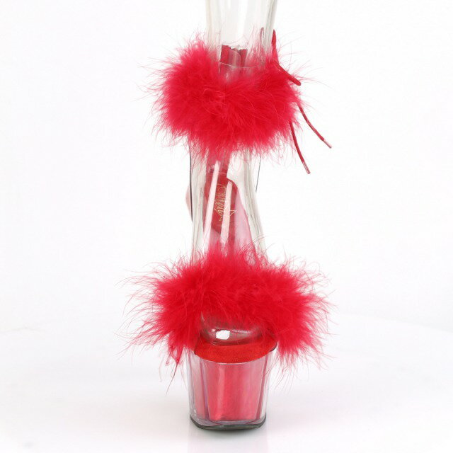 PLEASER【取り寄せ】クローズバックアンクルカフスマラボーファー厚底サンダル/品番:ADORE-724F/ADO724F/17cmヒール/ダンスシューズ/ダンス/衣装/靴/ポールダンス/キャバ嬢/ドレス/小さいサイズ/大きいサイズ/レッド/赤