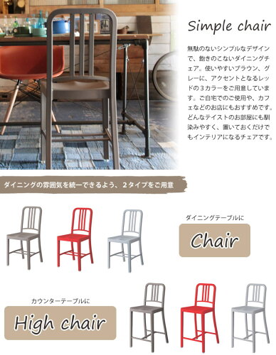 商品 ダイニングチェア 2脚セット サイズ 幅400×奥行460×高さ880mm、座面高さ470mm 素材 ポリプロピレン 生産 中国 完成品 - 備考 空間に馴染みやすいブラウンとグレー、アクセントになるレッドの3カラー。