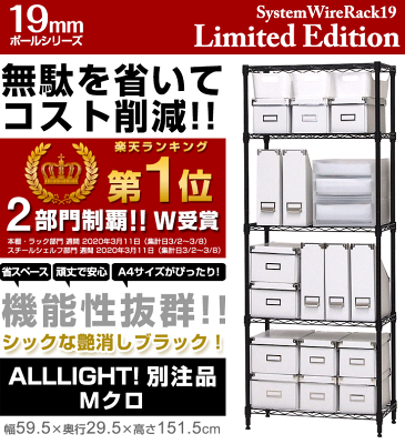 59.5cmワイヤーバーを背面に1本必要、 29.5cmワイヤーバーを側面に2本必要 ラック ランキング 週間ランキングでも1位獲得の大好評カラーラック (本棚・ラック・カラーボックス ランキング 週間 2020年3月11日更新・集計日3/2〜3/8) (スチールシェルフ・メッシュラック ランキング 週間 2020年3月11日更新・集計日3/2〜3/8) スチールラック業界シェアトップクラスの「ルミナス」でおなじみドウシシャ製の当店オリジナル別注品です。