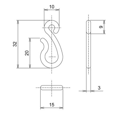 【製品特長】カーテンリングR2233とシャワーカーテンを繋ぐS型フックです。