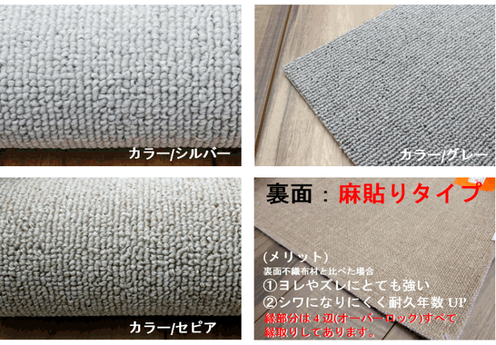 ●カーペットの縁取りは(オーバーロック 4辺)同色糸で縫ってあります。